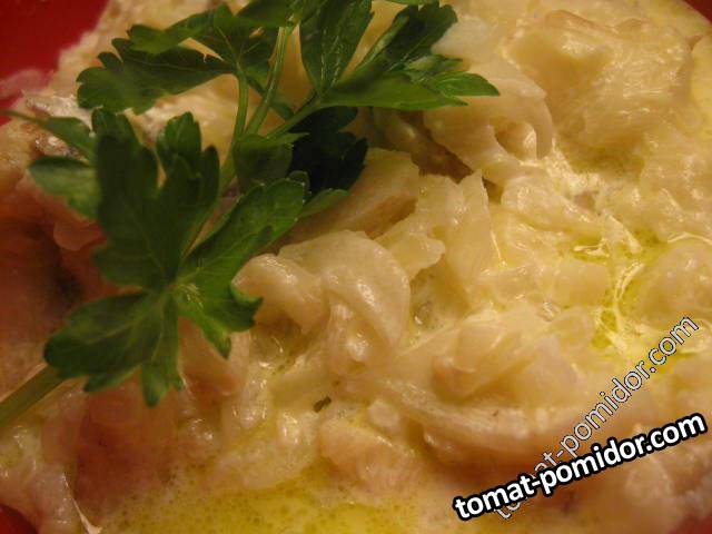 Треска с луком в сливочном соусе