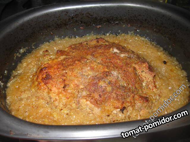 Свинина, запеченная в луковой подливе