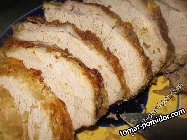 Свинина, запеченная в луковой подливе