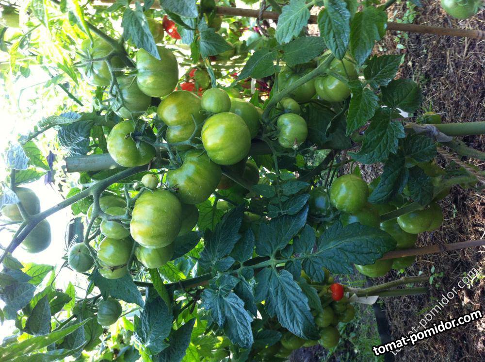 Низкорослый, сильно пострадал в рассаде, как и другие томатики, от неизвестной болезни: скручивались вовнутрь листья, был некроз, опадали листья.. Зацвел еще на подоконнике, попал под заморозки, как и другие. И... всё нипочём! Всем бы нам так. :) Что касается вкуса - однозначно оставляет желать лучшего. Но для консервации прекрасно подходит, так как компактные плодики, влезают в банку, кожица нетолстая. Пока сажать не планирую.
