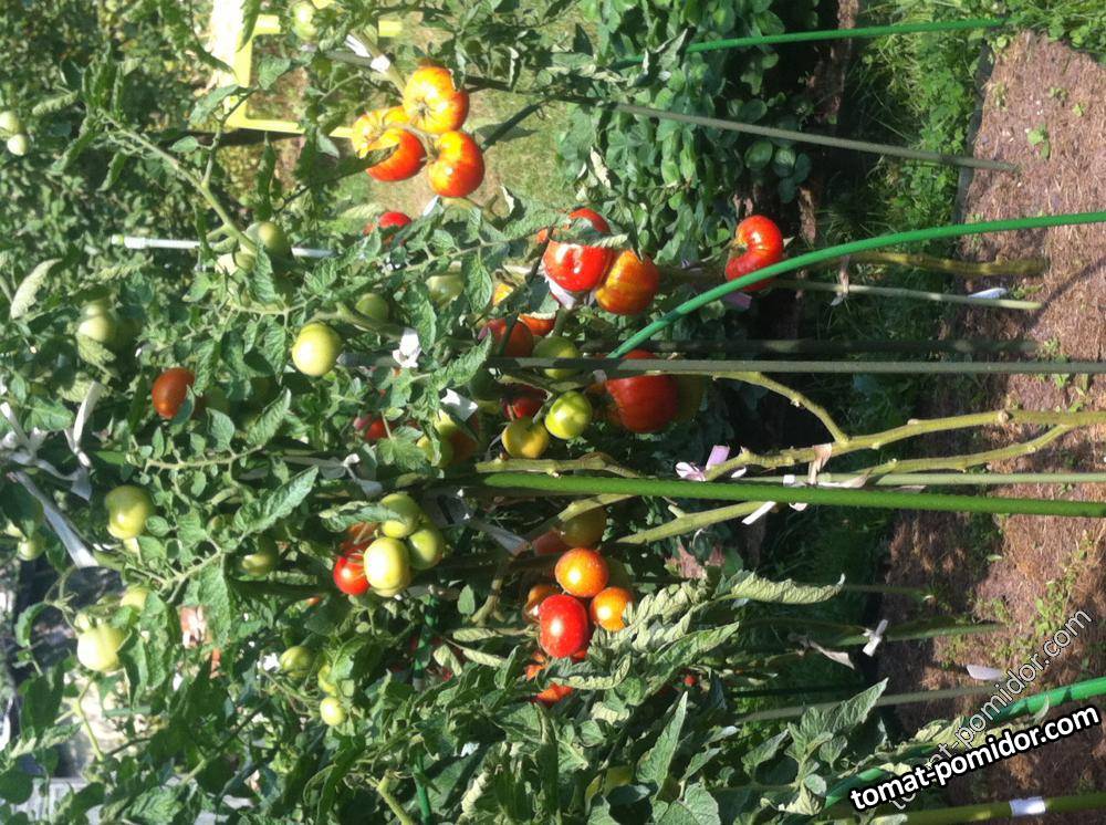 Неплохой томатик, очень высокорослый, обсыпанный симпатичными помидорчиками с носиком. Хорошие в засолке.