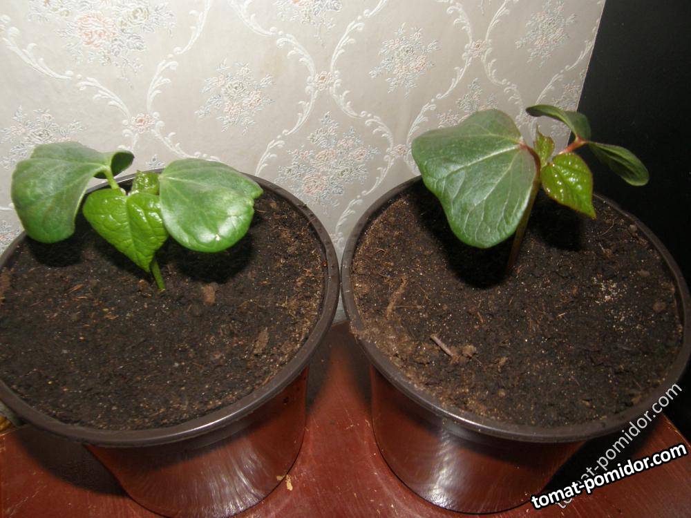 Слева - хлопок коричневый MSB Brown, справа - хлопок белый, редкий сорт с черными листьями Nigra или Black Cotton.