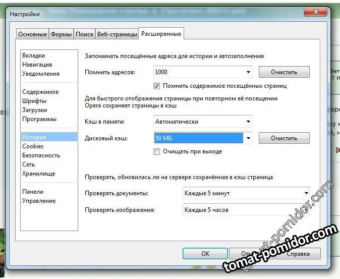 Очистка кэша в Опере