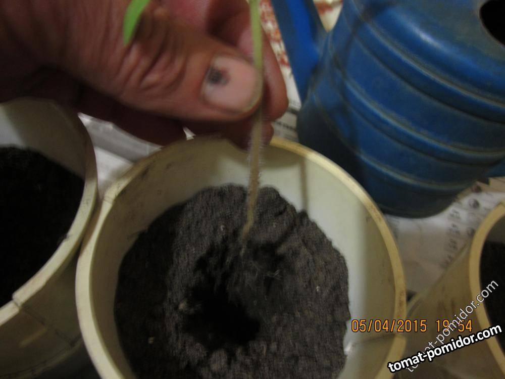 Извлекаем рассаду, осторожно поддев вилкой исходную почву, ставим в сделанную ямку в горшочке, поливаем и... засыпаем лунку.