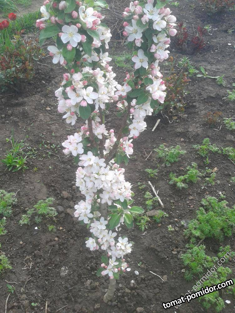 Колоновидная яблоня цветёт