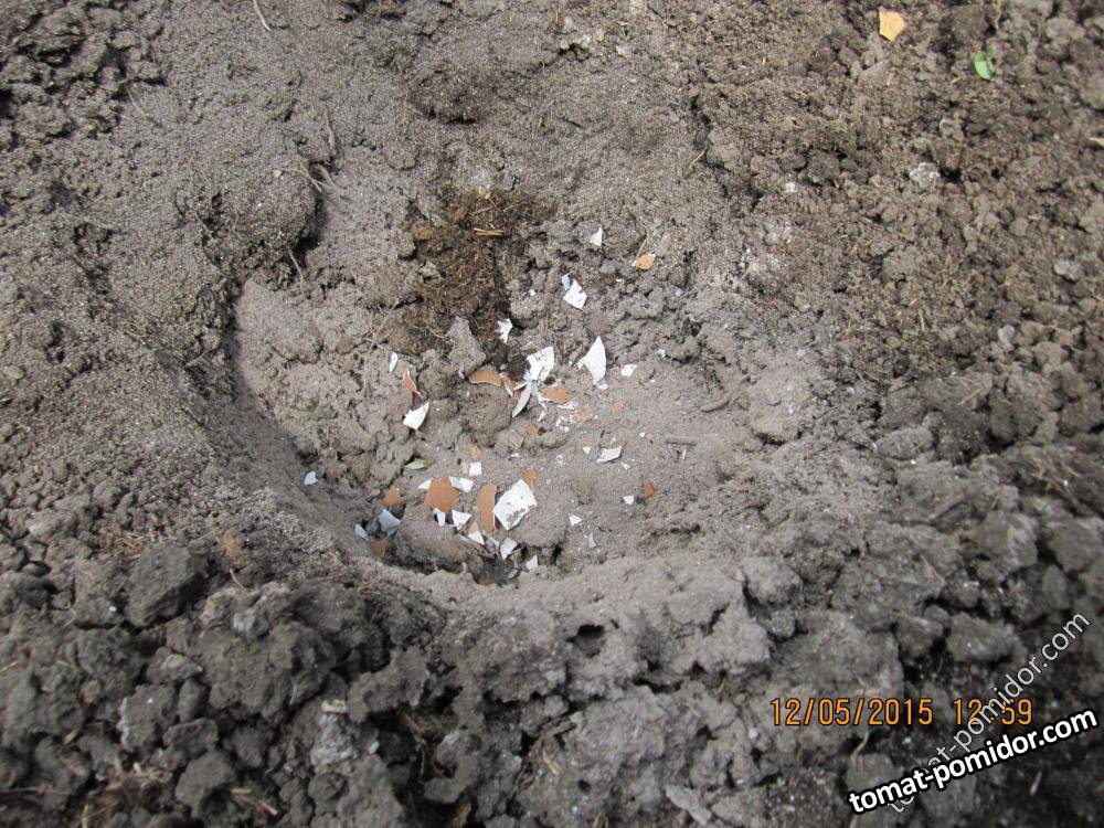 Начнём с подготовки лунки. В неё нужно положить горсть золы+пару скорлупок от яиц+ перегной, если это необходимо. Всё зависит от подготовленной с осени почвы. Лунка глубиной в среднем 25, до 30 см. Перед самой посадкой поливаем водой с марганцовкой, слегка розовой.