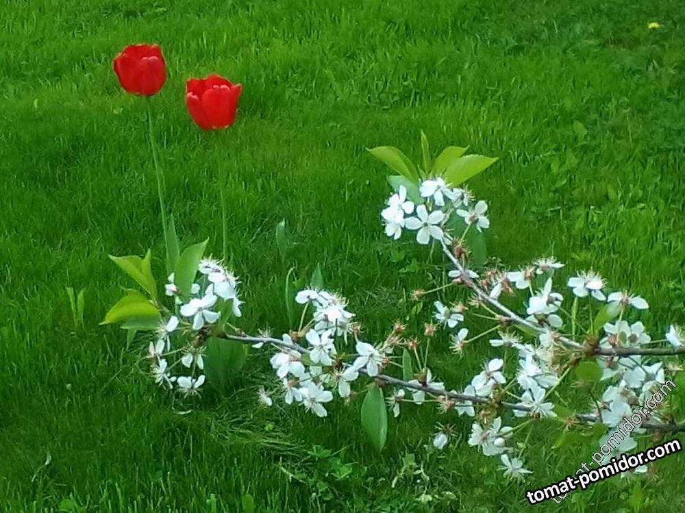 Одичавшие тюльпаны на газоне