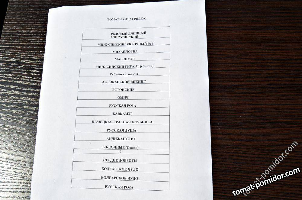 Список сортов ОГ 2 грядка