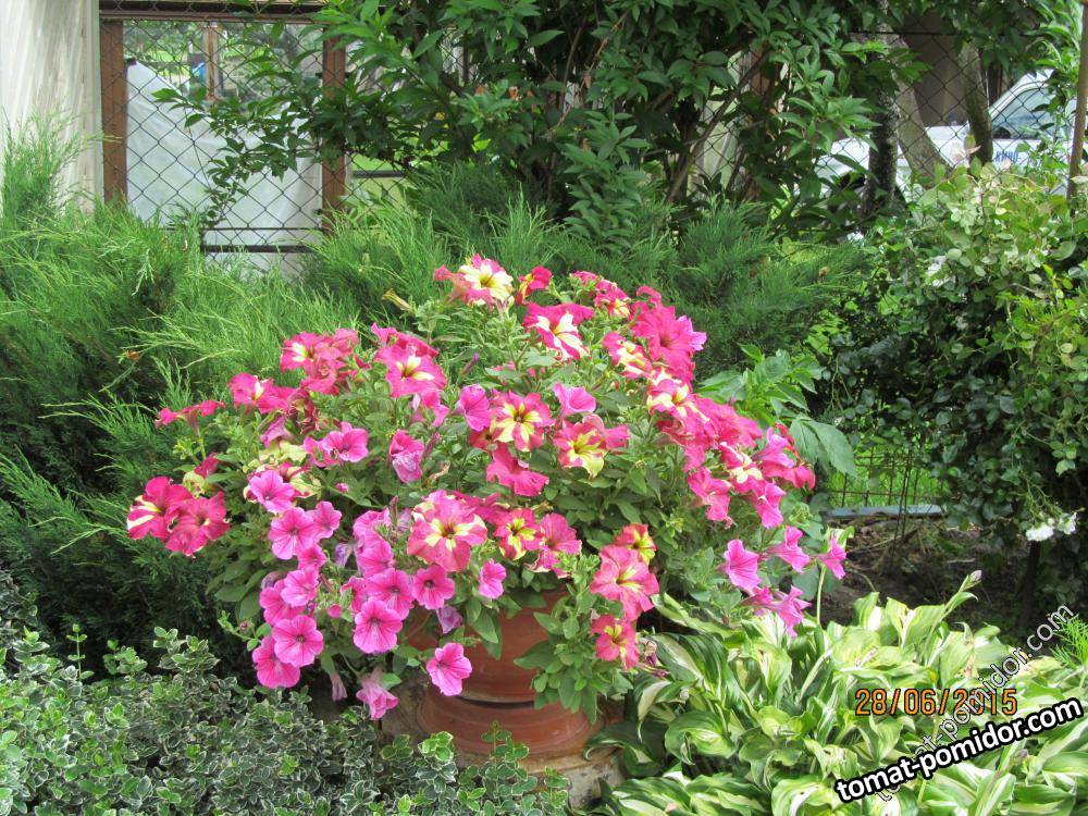 Петунии в кашпо
