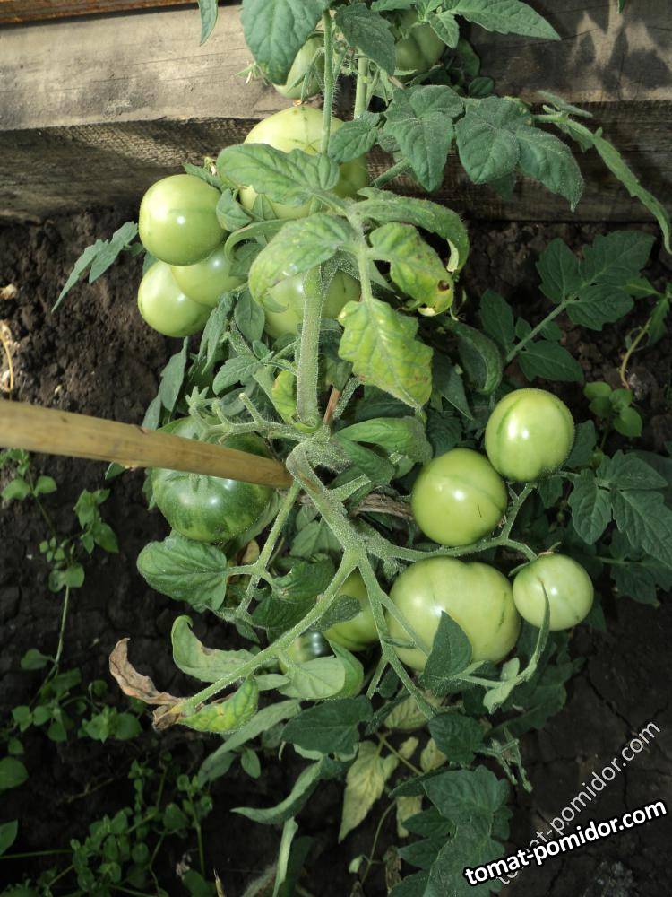 завалился ,листьев нет одни помидорки