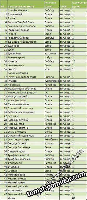 Список сортов для посадки в теплицу - 2014