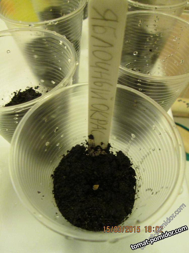 Семечко помещаем во влажный грунт. Правильную степень увлажнения можно проверить сжав в руке немного грунта. Если комочек сохраняет форму при разжатии руки, а при нажатии пальцем рассыпается - это то, что надо.
