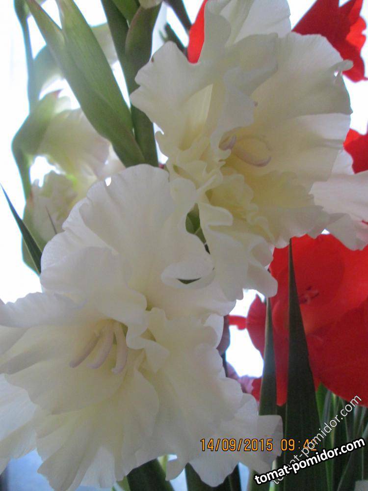 Этот гладиолус зацвёл самым последним и радовал своим цветением почти до октября.