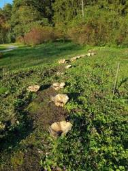 Наступает трудное время... На улице всё холоднее и всё темнее, неохота вообще куда-то вылазить, не то, что работать. Вчера пообрезала гортензии, эхинацеи и вейники у Игоря, прибралась и наконец-то посадила несчастные мускарики. Сажала в газон, снимая кусочки дёрна, Игорь увидел и сказал, что из зарплаты вычтет Но это Алеся попросила их там посадить, поэтому я всё равно посадила И поставила кустодержатели под кусты голубики, чтобы их снегом не сложило. Игорь напаковал мне целый мешок фруктов - гроздь бананов и несколько яблок: я, мол, столько не съем, а Алеси нет. Сказал, что с доставкой меньш